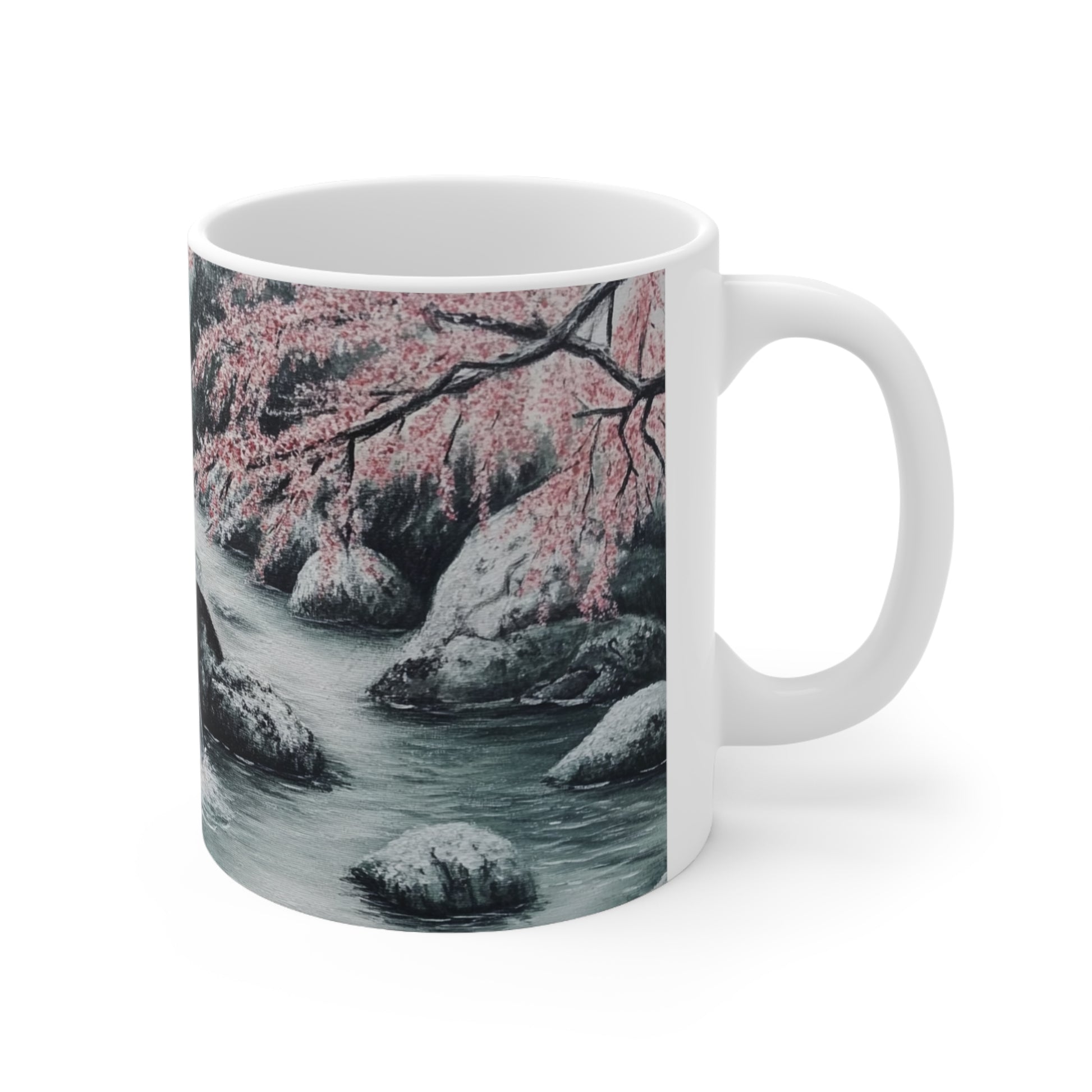 Discover my exclusive collection of coffee mugs inspired by serene Asian garden scenes. Each mug showcases high-quality, vibrant images depicting tranquil settings, such as a person sitting on a stone bridge over a flowing stream, surrounded by blooming cherry blossom trees. These mugs capture the essence of nature and traditional architecture, featuring elements like wooden structures nestled among trees and rocks. Crafted from durable ceramic, these mugs ensure long-lasting use and vivid image quality even after multiple washes. Perfect for morning coffee, afternoon tea, or any hot beverage, they bring a touch of peace and historical significance to every sip. Ideal as thoughtful gifts for friends, family, or colleagues who appreciate the tranquillity of nature and cultural heritage. Celebrate the beauty and serenity of traditional Asian gardens with my exclusive range of garden-themed coffee mugs, designed to bring joy and a sense of calm to your everyday moments. Perfect for that strong coffee boost in the morning. The C-shaped easy-grip handle helps keep the cup steady even in a rush.